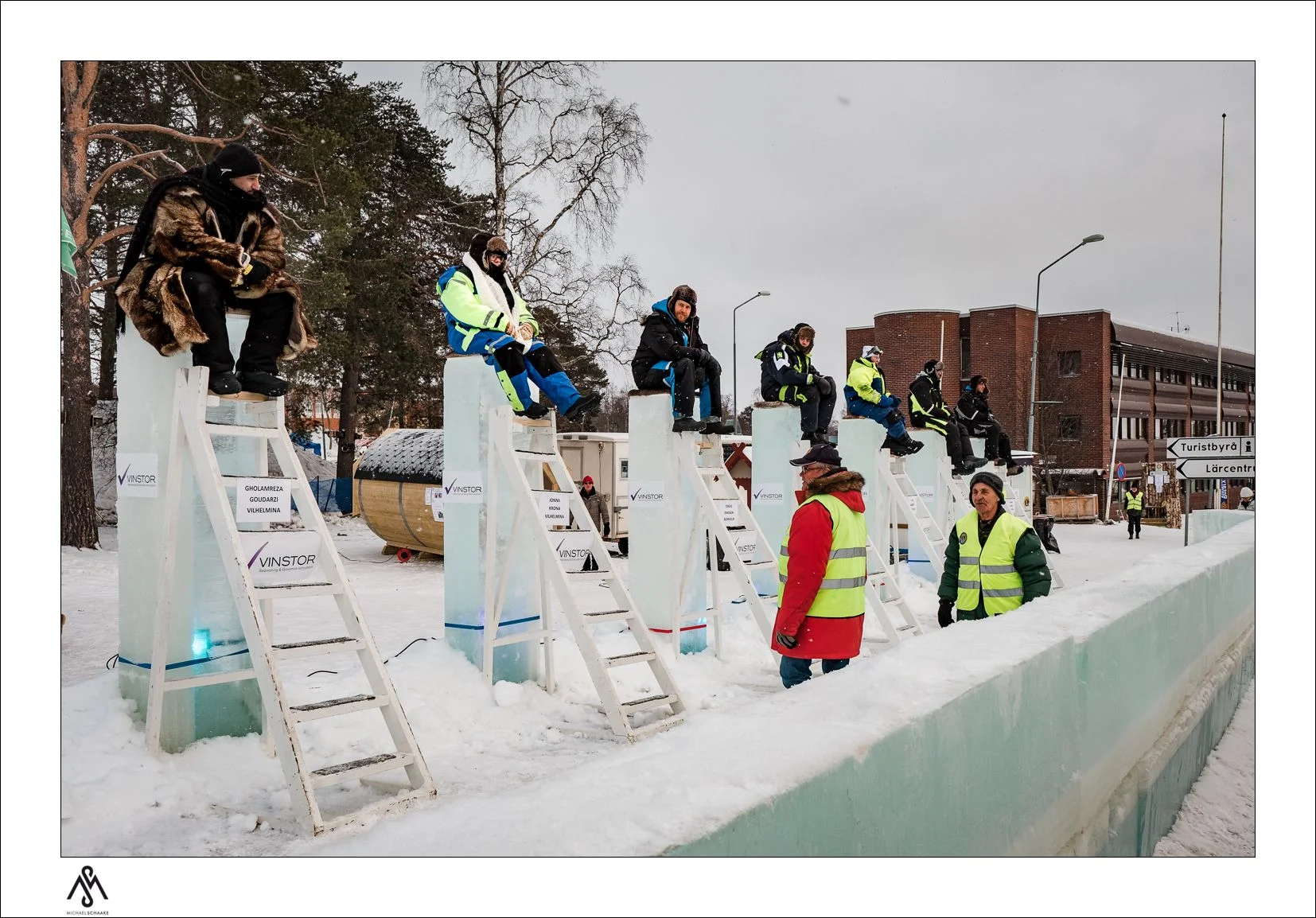 7 people sitting on ice-chairs at -20 degrees. The contest lasts for 48 hours. The winner(s) who do not give up get(s) around 2000 Euro. Why did they build an ice church next to them...? Asking if this is a really hard contest i am told that a German tourist tried it a few years ago. He gave up after 4 hours...because of his shoes not being warm enough!